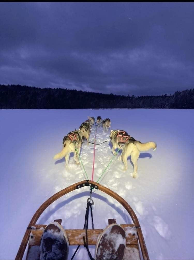 Pannlampornas sken visar vägen och du kommer att få en spännande upplevelse tillsammans med våra hundar.